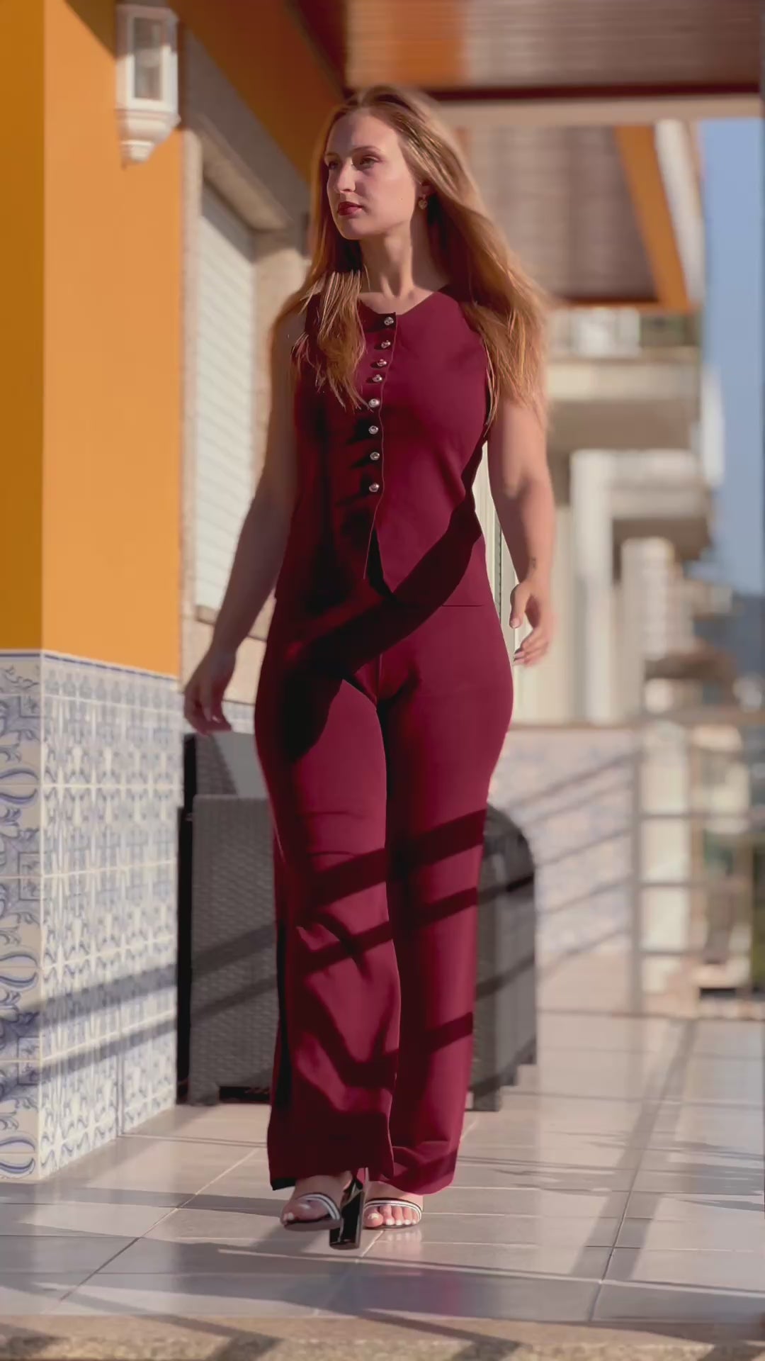 Conjunto muito confortável com botões dourados. Tamanho único, serve do XS até ao L.
